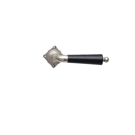 Ovenpainike, Björkboda 25, yksinkertainen malli, vanhaan oveen, niklattu messinki ja musta puukahva