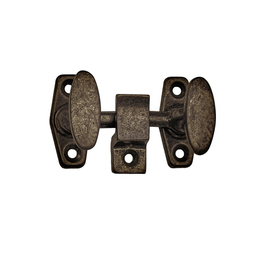 Ikkunasalpa yksittäinen pieni malli sisäikkunoiden sulkemiseen 25 mm ruuvi mukana. Mustapatinoitu messinki. Pituus: 33 mm